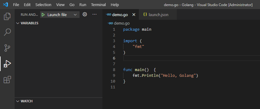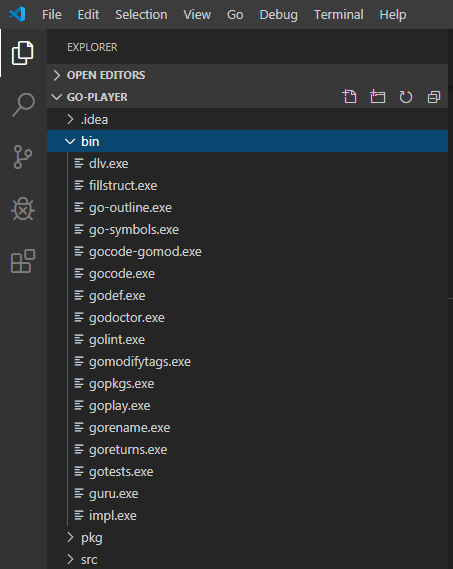 使用这种方法,需要安装一个 dlv,VS Code 会提示你安装它,安装完成后你会在 bin 目录下发现 dlv.exe。