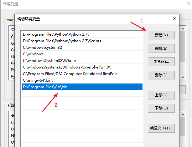 在弹出来的窗口中,新增一条 item,内容如下,这个目录是 go.exe 所在的目录