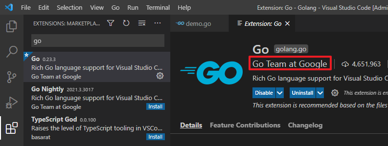 安装 Go 扩展