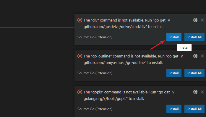 $ go env -w GOPROXY=https://goproxy.cn,direct然后再点击 Install All