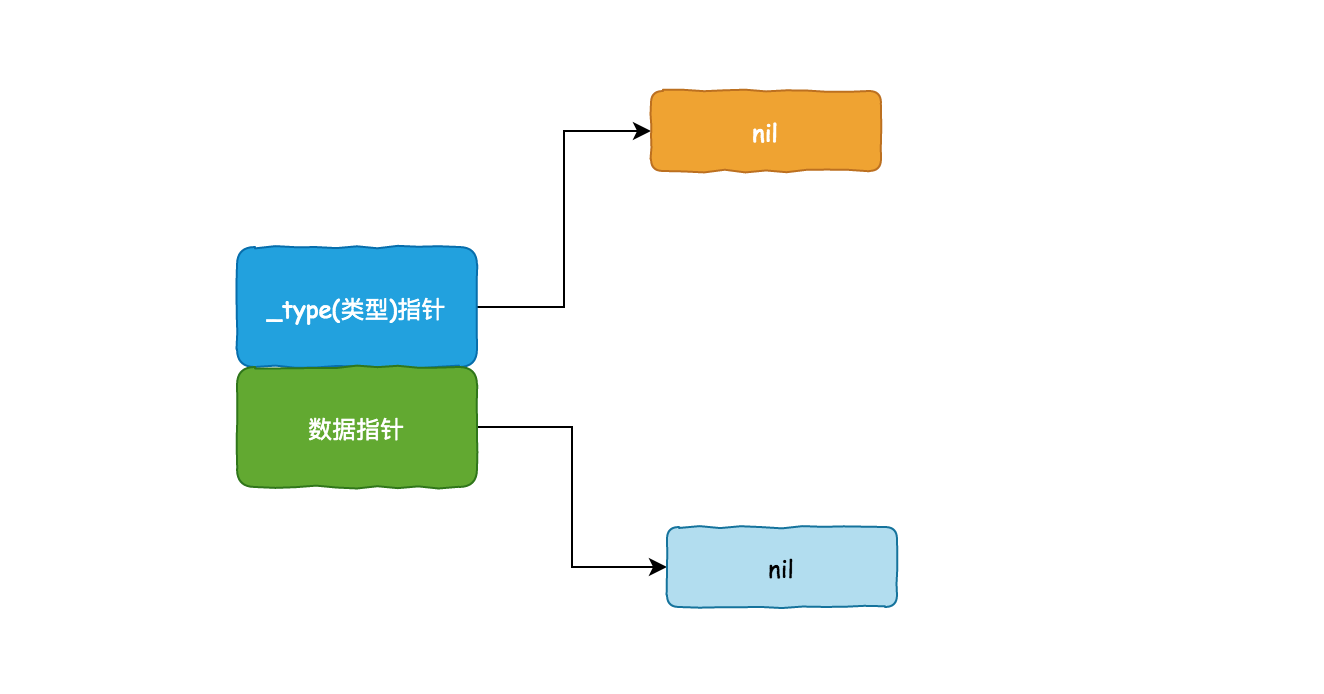 第一行代码:var empty interface{},由于 interface{} 是一个 eface,其只有一个 _type 可以存放变量类型,此时 empty 对象的(静态)类型是 nil。