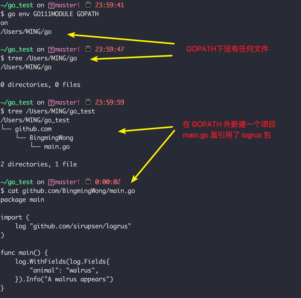 go mod 出现后, GOPATH(肯定没人使用了) 和 GOVENDOR 将会且正在被逐步淘汰,但是若你的项目仍然要使用那些即将过时的包依赖管理方案,请注意将 GO111MODULE 置为 off。