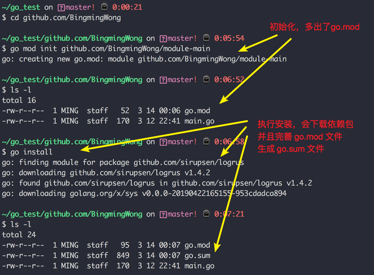 go mod init:初始化go mod, 生成go.mod文件,后可接参数指定 module 名,上面已经演示过。go mod download:手动触发下载依赖包到本地cache(默认为$GOPATH/pkg/mod目录)go mod graph: 打印项目的模块依赖结构