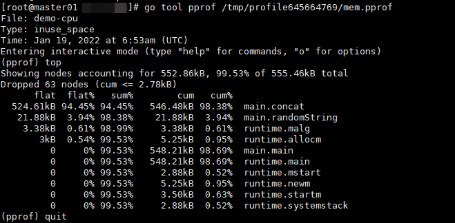 2022/01/19 06:53:02 profile: memory profiling disabled, /tmp/profile645664769/mem.pprof2.1 命令行界面分析